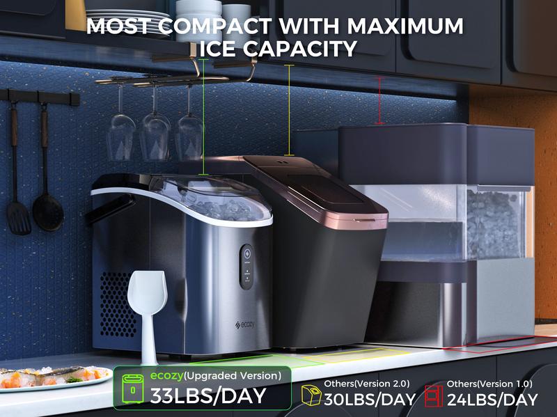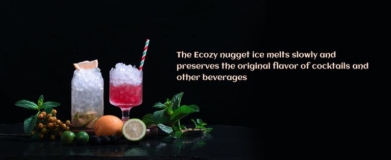 Looking for the ultimate drink experience? The ecozy nugget ice maker serves up chewable and crunchy nugget ice. Unlike bullet ice and square cubes, nugget ice melts slowly and cools drinks quickly, preserving the original flavor of cocktails and other beverages.